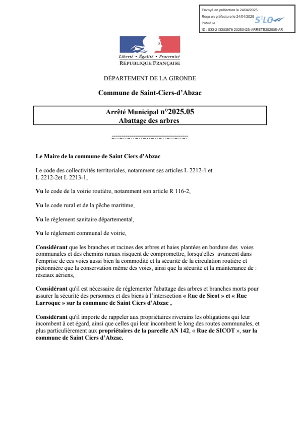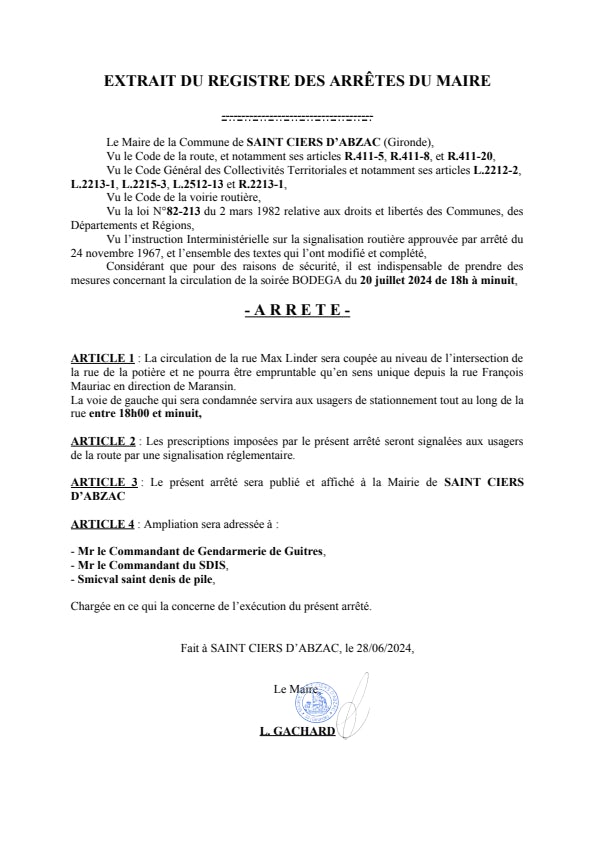 Arrêté municipale pour la journée du patrimoine du 21 et 22 septembre 2024